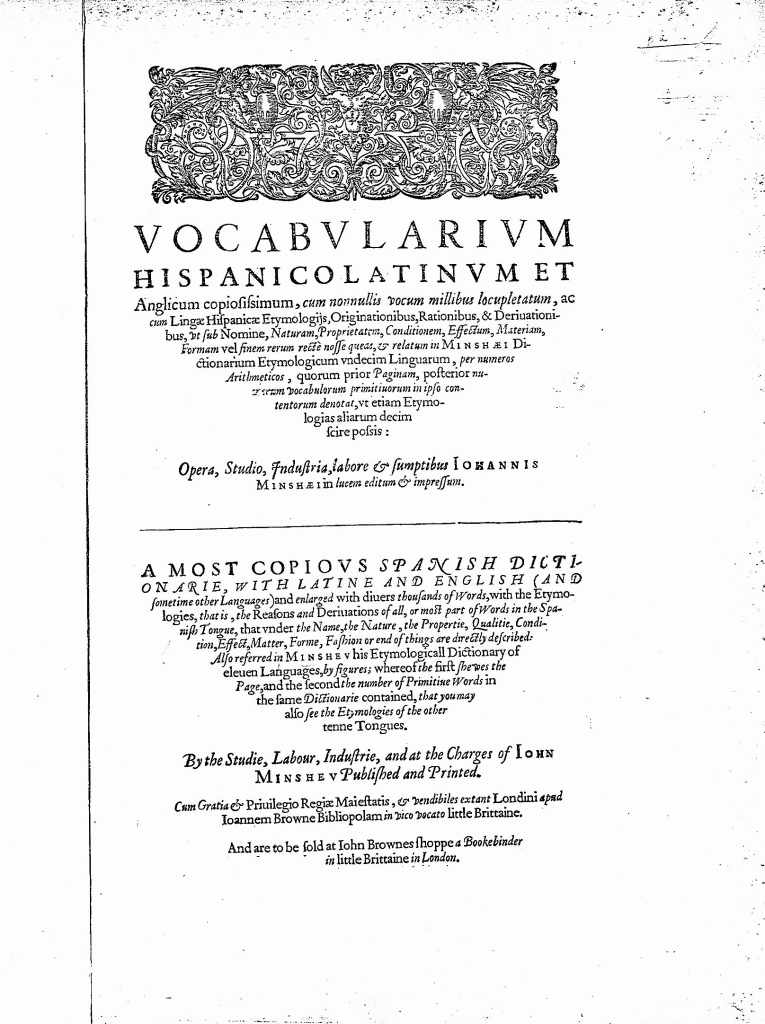 La primera vez que la palabra PLECTRO aparecía en un diccionario fue en 1617, en el Vocabularium Hispanicum Latinum et Anglicum copiossisimum, escrito por el hispanista, gramático y lexicógrafo inglés de la época isabelina John Minsheu, un maestro de lenguas, casado, con muchos hijos y bastante pobre, motivo por el que tuvo que mendigar el mecenazgo de varios nobles para poder costear e imprimir sus obras.