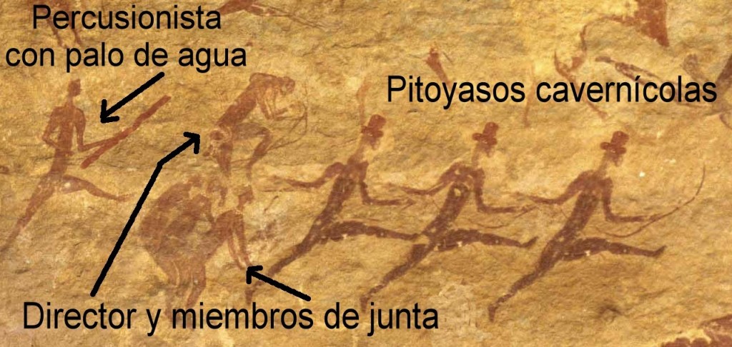 De lo que no hay duda es de que este fenómeno musical ya estaba presente en los orígenes de la Humanidad, como así lo atestiguan ciertas pinturas rupestres de unas cuevas de Tanzania (llamada así por ser cuna de Tanzán de la Selva), que ustedes pueden apreciar en la siguiente imagen.