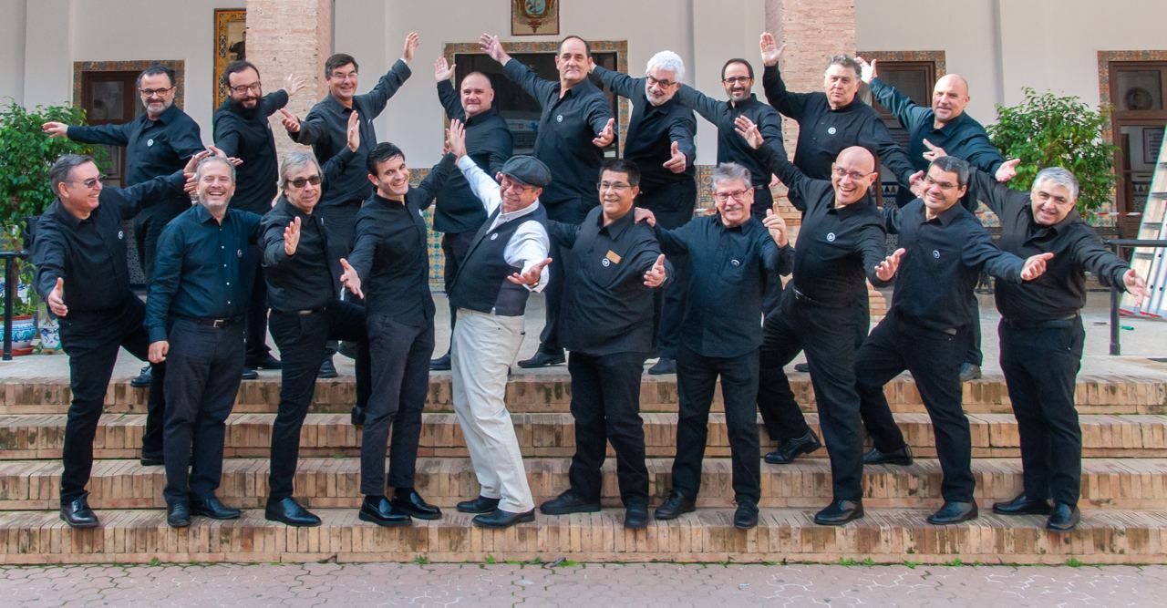 Pues es una corriente músico-lúdica que fusiona obras de vertientes tan dispares y afines a la vez (como el swing, el jazz, la marcha cofrade, la banda sonora o la música clásica) a la magia audiovisual de locuciones e imágenes, en una sinfonía corística que coquetea a veces con el universo onírico del baile, y que armoniza con la teatralidad de seres místicos de chisteras gualdas que aderezan sus danzas con aterciopelados sones de pitos celestiales…