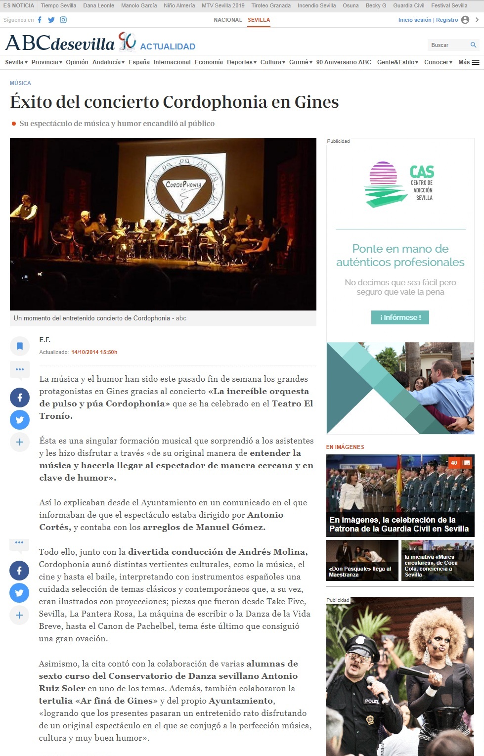 ABC de Sevilla también comentaba el éxito de nuestro concierto en Gines el 24 de octubre de 2014 ⬇⬇⬇