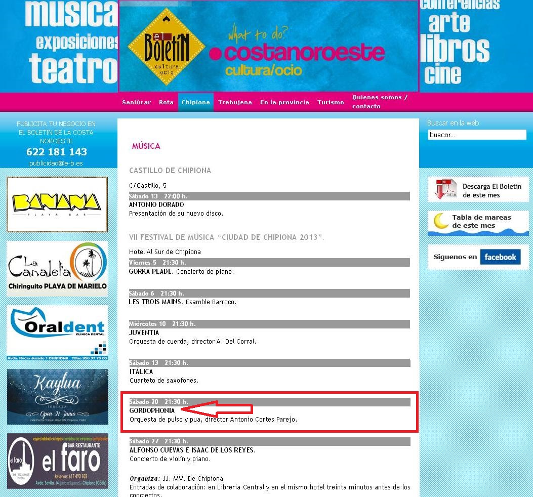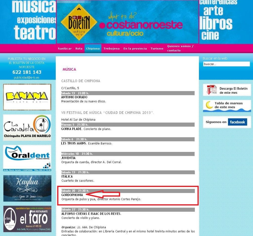 También hemos tenido divertidas erratas en algunos medios que nos anunciaban en nuestros inicios, como la que se puede leer en este portal web que informaba de nuestro concierto veraniego de 2013 en Chipiona (¿Sería que ya nos habían visto físicamente???) ⬇⬇⬇