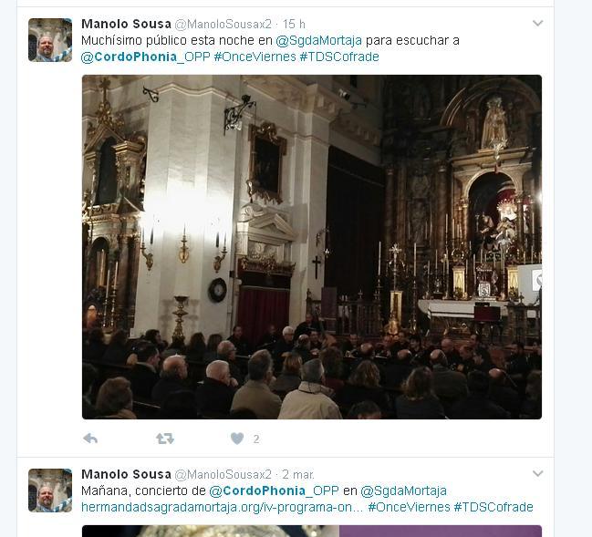 Diversas opiniones en Twitter sobre nuestro concierto ofrecido el en la Hermandad de la Sagrada Mortaja de Sevilla⬇⬇⬇