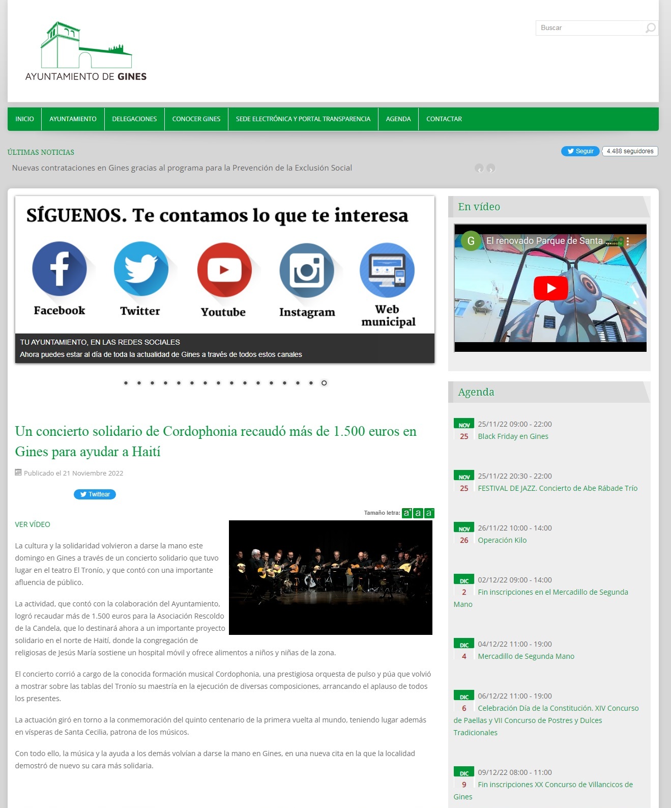 Nuestro granito de arena en proyectos solidarios quedan acreditados por la propia web del Ayuntamiento de Gines (noviembre de 2022) ⬇⬇⬇