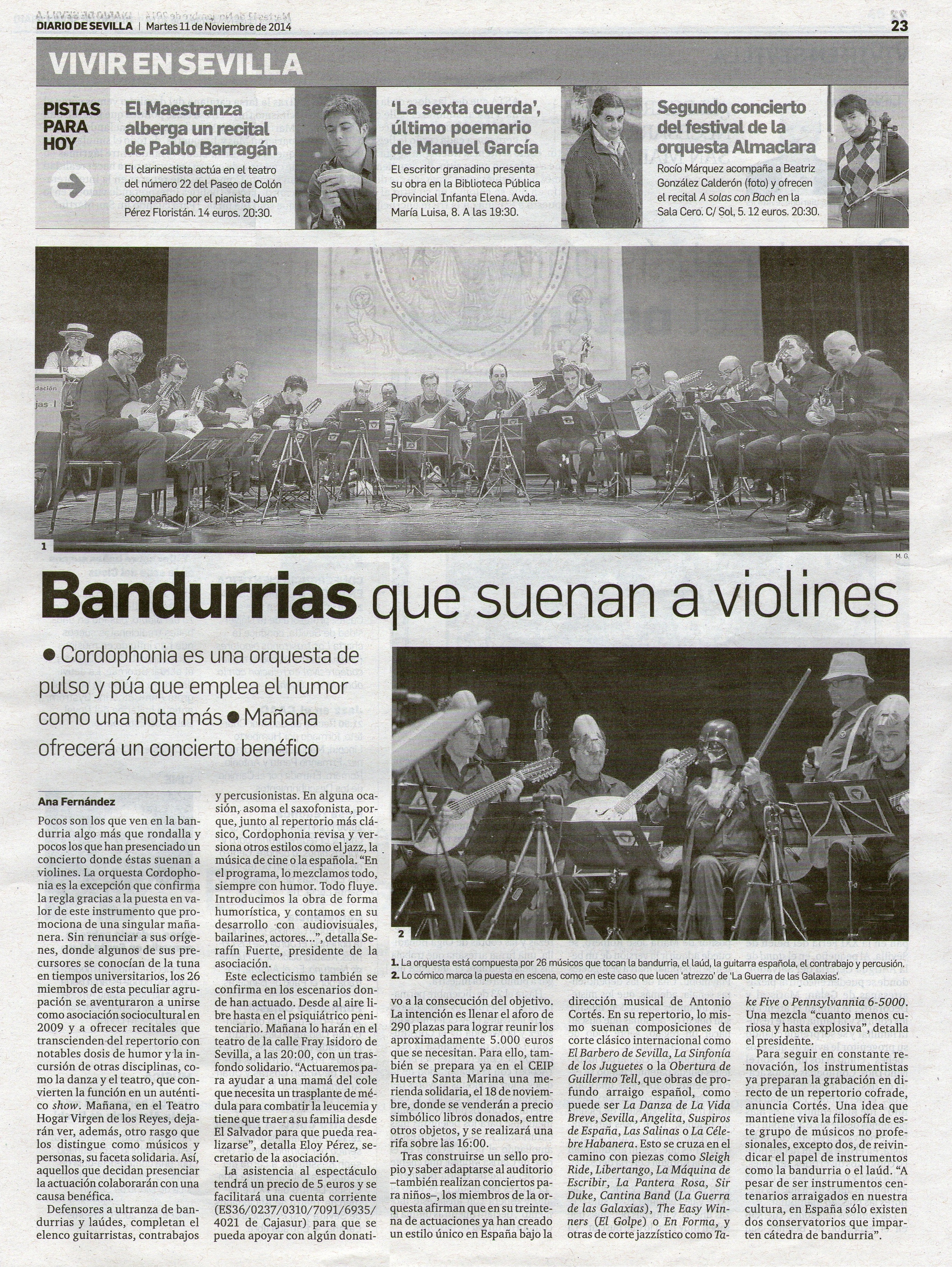Tras una entrevista que nos hicieron desde El Diario de Sevilla en 2014, el periodista nos dedicó toda una página para hablar de nuestro recorrido, aprovechando la antesala de uno de nuestros conciertos solidarios ⬇⬇⬇