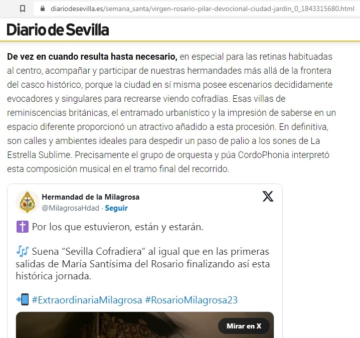 El hito histórico para nuestra ciudad de Sevilla de ser LA PRIMERA ORQUESTA DE PULSO Y PÚA QUE TOCABA UNA MARCHA A UN PALIO POR LAS CALLES DE LA CIUDAD en octubre de 2023 no dejó indiferente a nadie, y todos los medios cofrades se hicieron eco EN DIRECTO EN TWITTER ⬇⬇⬇