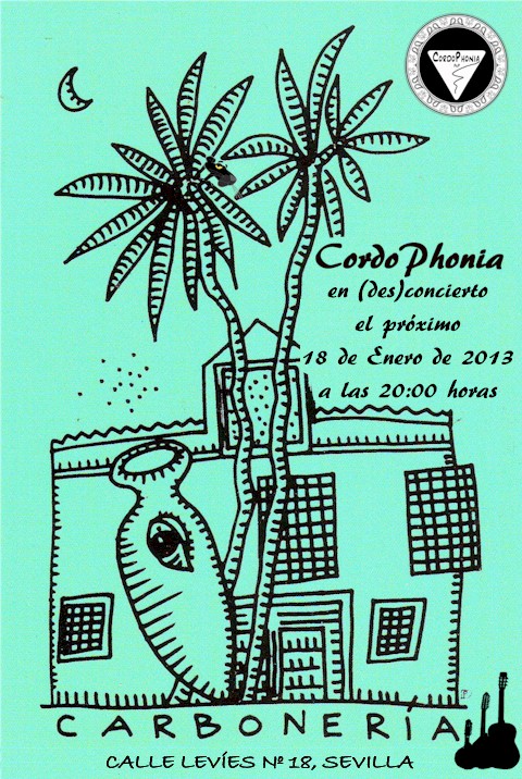 | 18 | 18 de enero de 2013 |  | Bar La Carbonería, PRESENTADOS POR DON RAFAEL DE CÓZAR, Calle Levíes. Sevilla | CordoPhonia en (des)concierto |