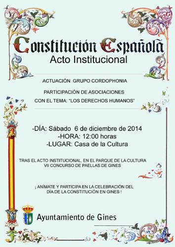 | 39 | 6 de diciembre de 2014 |  | Acto Institucional del Día Constitución. Ayuntamiento de Gines.Teatro El Tronío. Gines (Sevilla) | Clásico español |