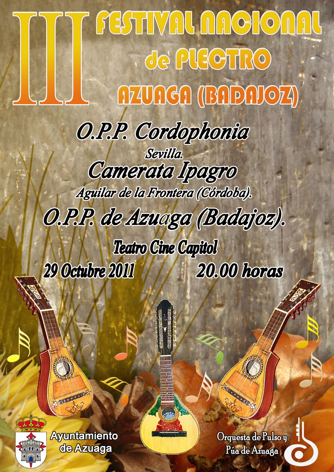 | 8 | 29 de octubre de 2011 |  | III Festival Nacional de Plectro. Teatro-cine Capitol. Azuaga (Badajoz) | Espectáculo «Arsa Púa» |