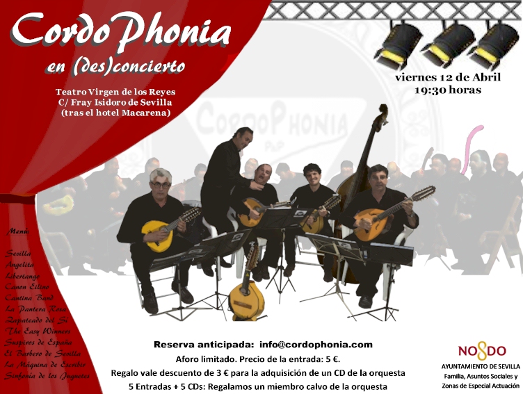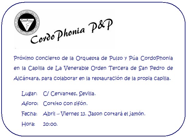 | 21 | 12 de abril de 2013 |  | Teatro Hogar Virgen de los Reyes. Sevilla | CordoPhonia en (des)concierto |