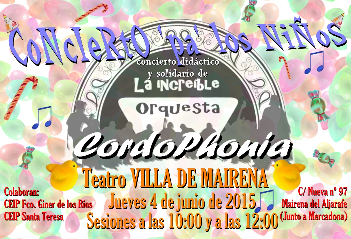 | 48 | 4 de junio de 2015 |  | Concierto fin de curso escolar. Teatro municipal Villa de Mairena. Mairena del Aljarafe (Sevilla) | CordoPhonia pa’ los niños, con danza |