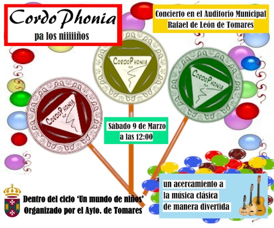 | 20 | 9 de marzo de 2013 |  | Ciclo Un mundo de niños. Auditorio municipal «Rafael de León». Tomares (Sevilla) | CordoPhonia pa’ los niños |