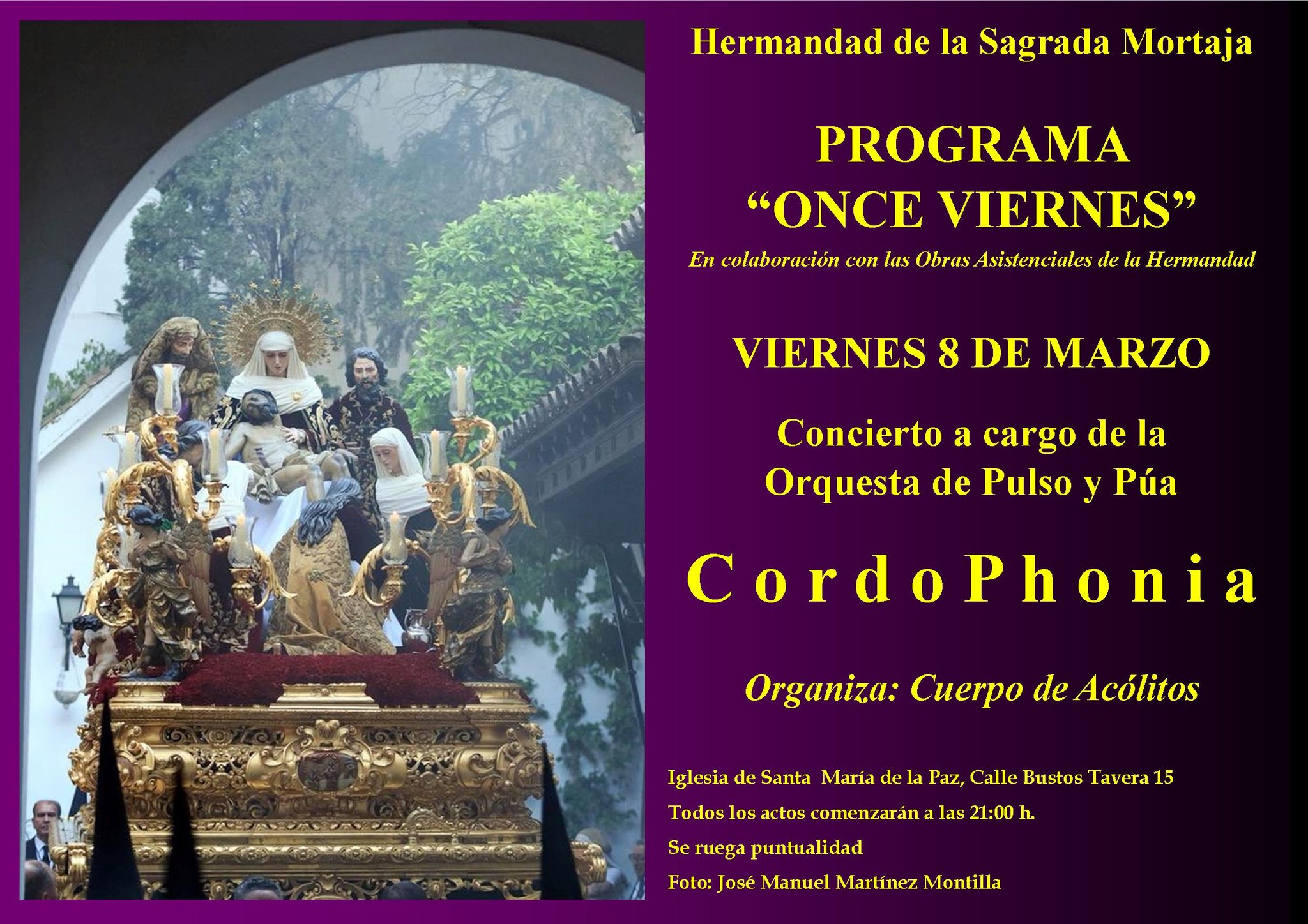 | 80 | 9 de marzo de 2019 |  | Concierto organizado por la Hdad. de la Sagrada Mortaja para el programa «Once Viernes». Exconvento de la Paz. Sevilla | Música procesional |