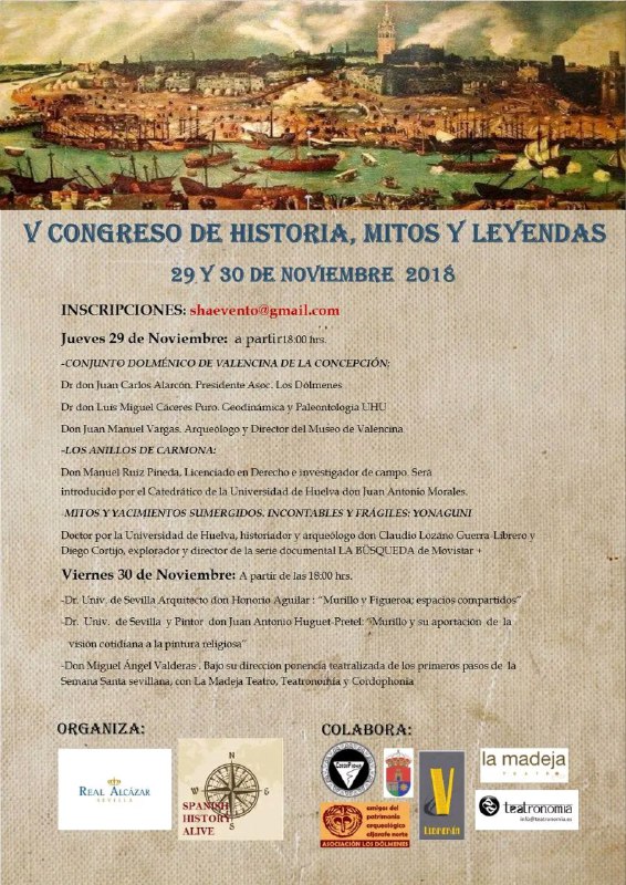 | 78 | 30 de noviembre de 2018 |  | V Congreso de Historia, mitos y leyendas en el Arte. Ponencia «La Semana Santa de Murillo» por D. Miguel Ángel Valderas Viejo. Salón Almirante. Reales Alcázares de Sevilla | Música procesional |