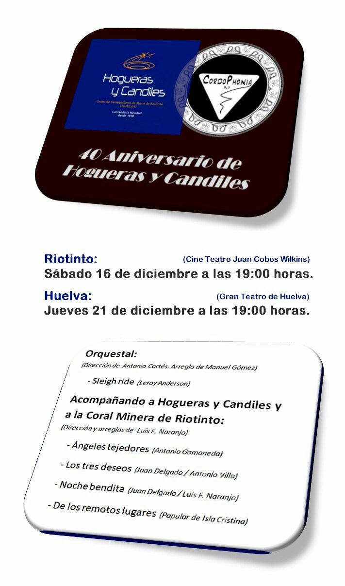 | 68 | 16 de diciembre de 2017 |  | Colaboración con el 40º aniversario del grupo de campanilleros «Hogueras y Candiles». Cine-Teatro Juan Cobos Wilkins. Minas de Riotinto (Huelva) | Navidad |