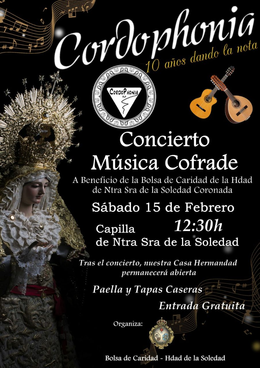| 92 | 15 de febrero de 2020 |  | A beneficio de la Bolsa de caridad de la Hdad. de la Soledad. Capilla de la Soledad. Coria del Río (Sevilla) | Música procesional |