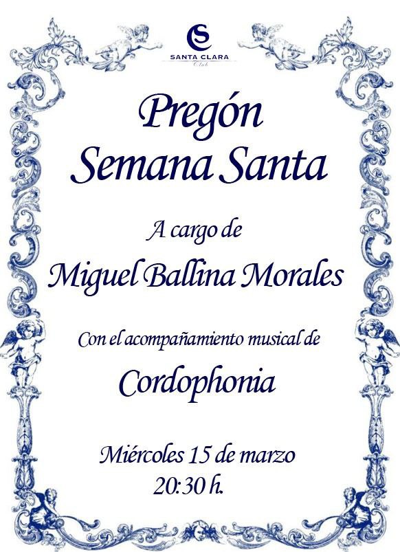 | 107 | 15 de marzo de 2023 |  | III Pregón Juventud Cofrade. Club Santa Clara. Sevilla | Música procesional |